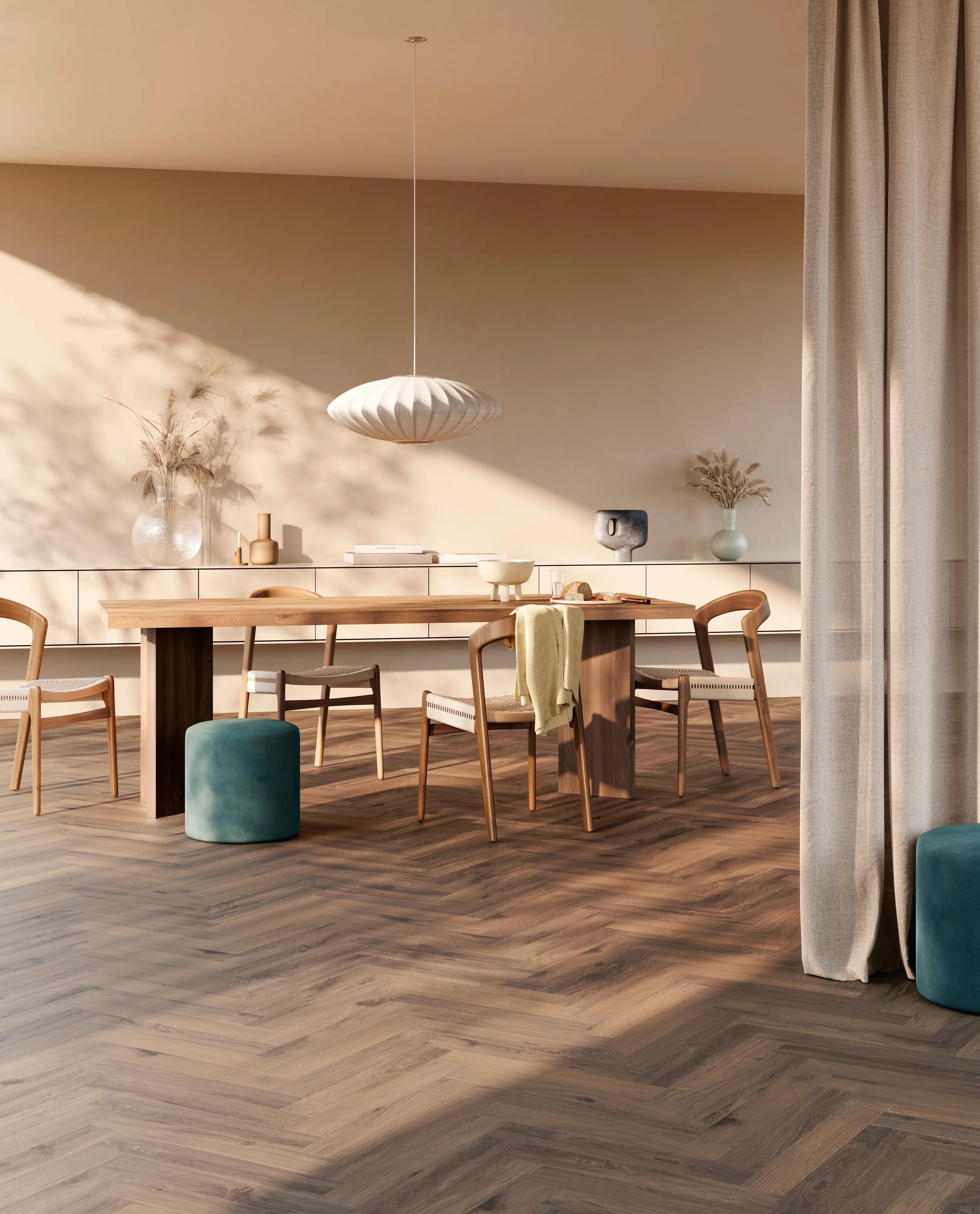 Bij Chateau+ kies je uit vier legpatronen: laat jouw creativiteit de vrije loop en ga voor de stijl die best bij jou past. Bekijk de plaatsingsinstructies van elk patroon voor een optimaal resultaat. Mix kleuren. Creëer jouw eigen unieke visgraatvloer. Alle decors zijn ook beschikbaar in standaard plankformaat, handig! Zo plaats je in de woonkamer bijvoorbeeld Chateau+, en in de keuken de standaard plank Ocean 8 V4.